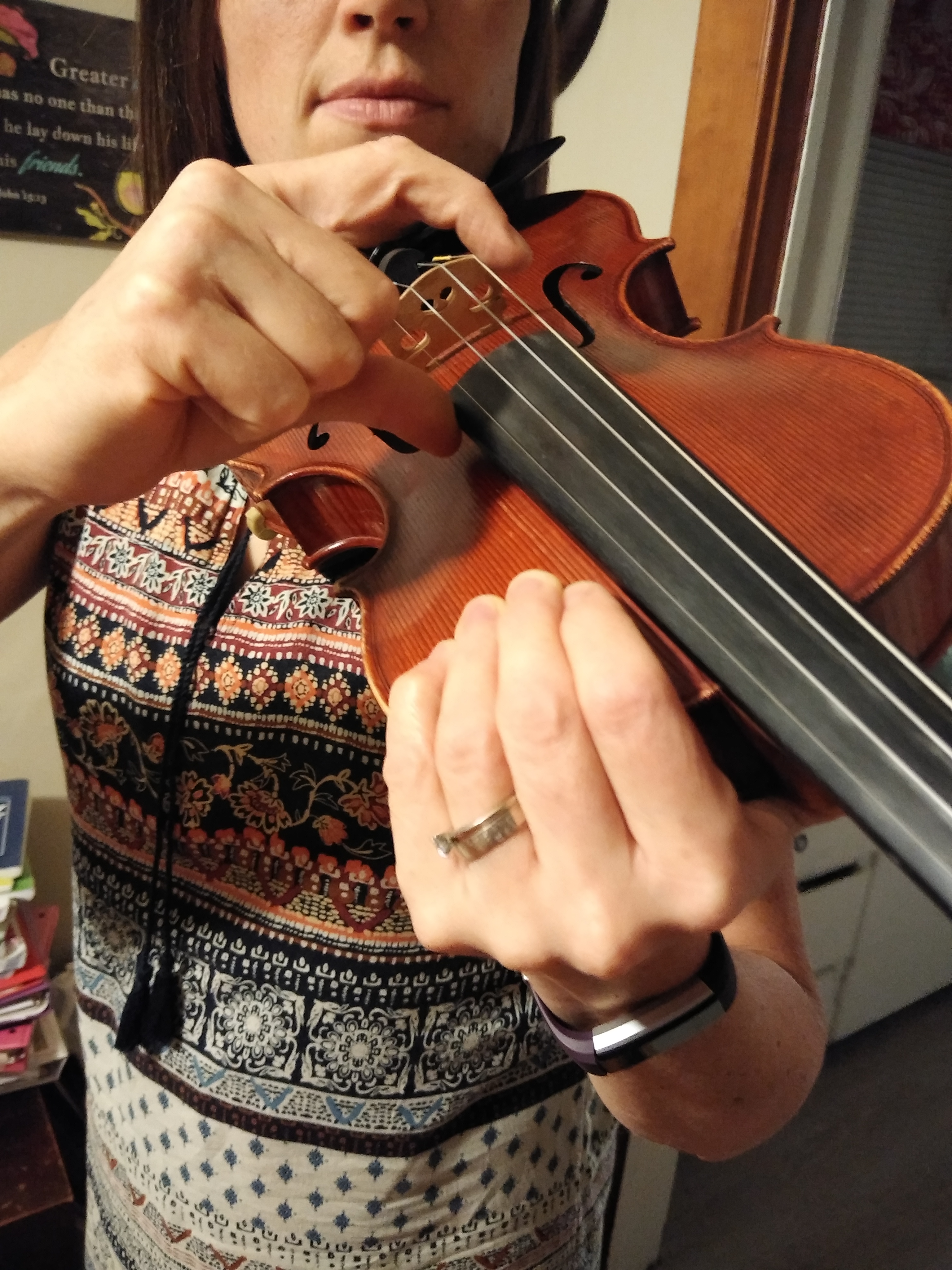 In the Essential Elements book, practice plucking #2 to #9 on pages 4 and 5. Here’s two pictures of what your hands for plucking position should look like: